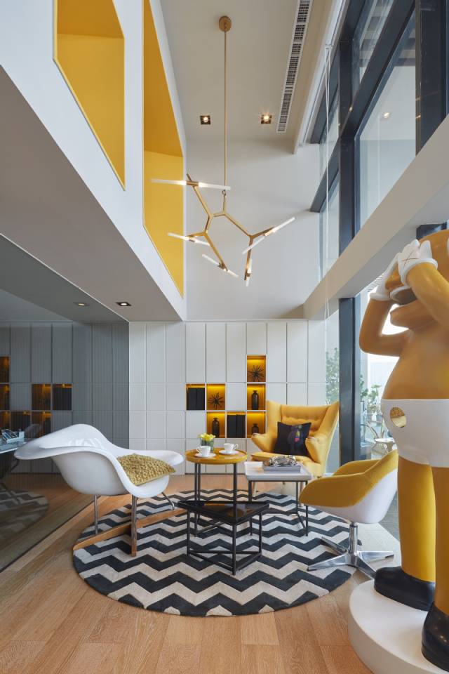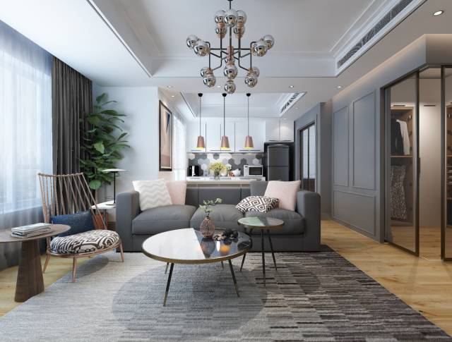 6、大多数灯具距地面都至少有2.1m的距离,但如果灯具下方是茶几或桌子,灯具就可以适当地放低一些。
