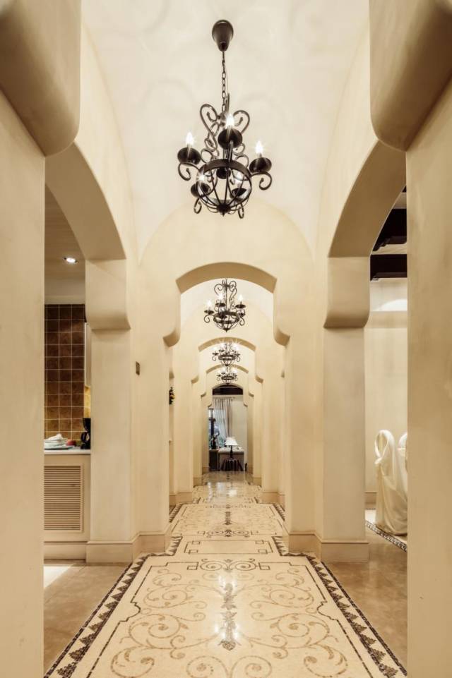 3、走廊一般会设置一排灯,如果走廊的顶很高,应悬挂较长的吊灯。灯具与地板之间的距离至少要有2.1m的距离。