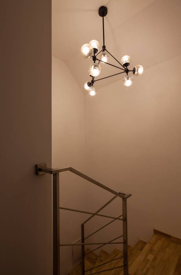 4、安装在楼梯上方的灯具底部与楼梯最高处(扶手处)应该有45-61㎝的距离。