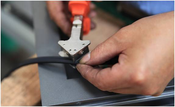 大家都知道,门窗最终质量与加工厂的加工能力有比较大的关系,其中一个重要指标就是拼角。好的门窗角部两个型材的连接,是用铝角码连接,然后用组角机把型材与角码挤压在一起,然后在孔里注射双组分胶,让角码框材固化在一起。常用的低质量做法有:无角码拼接,有角码不打固化胶,或者这是在口上打一点欺骗消费者。此外,还可以通过用手触摸组角的拼缝来判断质量,越平滑的说明组角加工质量越好。
